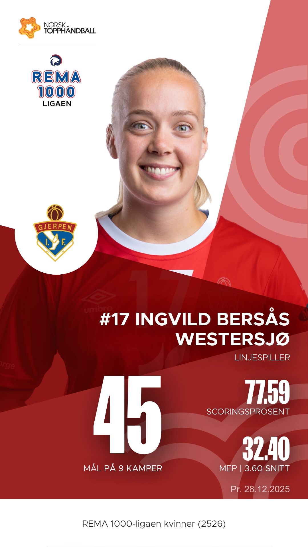 Hos Gjerpen Skien er det flere profiler som virkelig har tatt ansvar denne sesongen. Ingvild Bersås Westersjø har vært lagets mest effektive spiller, en linjespiller som både scorer og skaper rom for bakspillerne. Ingeborg Rolseth Holt har vært en playmaker med blikk for spillet og gode avslutninger, mens Lea Tidemann Stenvik har vært en pådriver med både målteft og vilje til å utfordre i gjennombrudd. Bakerst har målvakt Mia Stensland vært en redningskvinne i ordets rette forstand – med over hundre redninger allerede denne sesongen har hun vært Gjerpens trygghet i 6-meteren.
